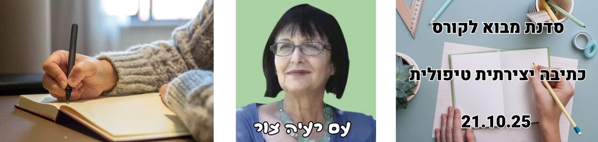 הקורס מזמן עבודה תהליכית ורגשית -חיבור שבין כתיבה יצירתית לעיבוד וקידום תהליכים אישיים של מודעות וריפוי. חווית הכתיבה היא תהליכית- יצירתית וכוללת פרוזה ושירה. בקורס נחווה את יכולת הכתיבה הטמונה בנו, ללא ביקורת, שיפוטיות או השוואות מקבעות, נאפשר מרחב יצירתי על מנת לעורר עולם אישי נפשי של חוויות, זיכרונות, מחשבות ורגשות. נצא למסע בשבילי הכתיבה, מסע של אותיות ומילים, סיפורים ושירים אל עולם פנימי יצירתי הטומן בתוכו כוח בורא ומרפא. הקורס הוא שילוב מנצח של 19 שיעורים ב-live zoom יחד עם 4 מפגשים פרונטליים לטובת תרגול הנחיה בכתיבה טיפולית. קורס זה מועבר בפורמט ייחודי המותאם במיוחד לעידן הנוכחי ומאפשר לכל אחד ואחת, מכל רחבי הארץ, לקחת חלק בחוויה מחברת, מוגנת ומפתיעה להתפתחות מקצועית ואישית.