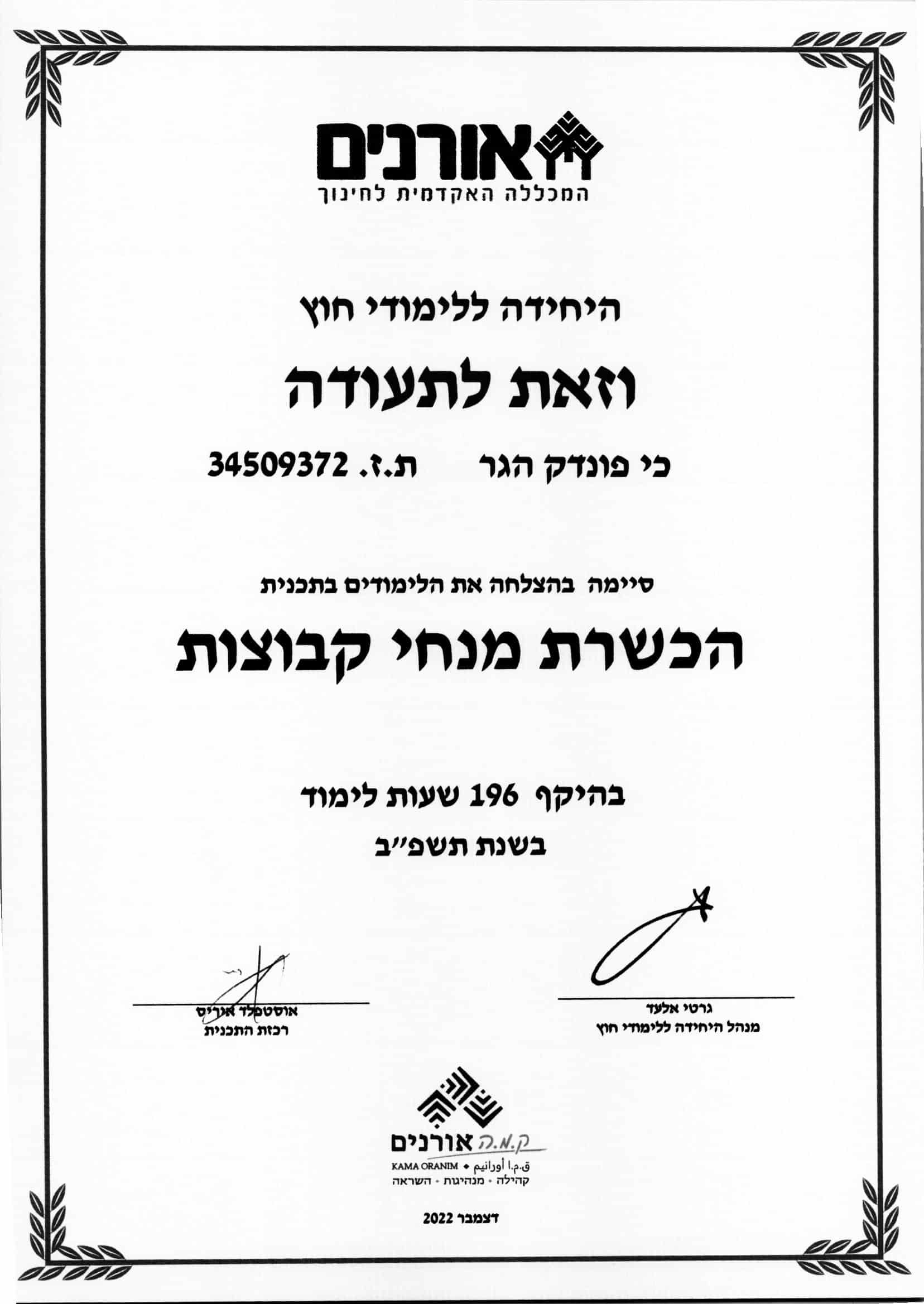 המימד המקצועי – נעשיר את ארגז הכלים המקצועי, נלמד מושגים מעולמות הטיפול, על דרכי ההתערבות בהנחיה בשילוב אומנויות ונתנסה בעבודה מעשית שתחזק את תחושת הבטחון בעבודה.